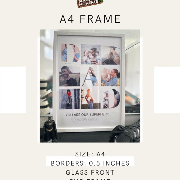Size: A4 (8x12 Inches) Colors: White & Black Borders Size: 0.5 Inches Front: Glass Material: PVC
